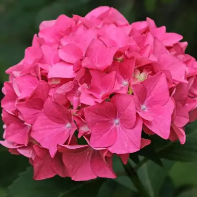 Гортензия Альпенглюхен (Hydrangea macrophylla Alpenglühen) – это классический, проверенный временем сорт крупнолистной гортензии, знаменитый своим насыщенным и устойчивым цветом. Название сорта, переводимое как «Альпийское сияние», идеально описывает его яркую, стабильную окраску. Этот компактный и прямостоячий кустарник формирует плотную крону, достигая высоты и ширины около 1–1,5 метра. Листва у гортензии Альпенглюхен крупная, глянцевая, темно-зеленого цвета, что создает идеальный фон для ее впечатляющих шаровидных соцветий, которые в диаметре могут достигать 15–20 см.