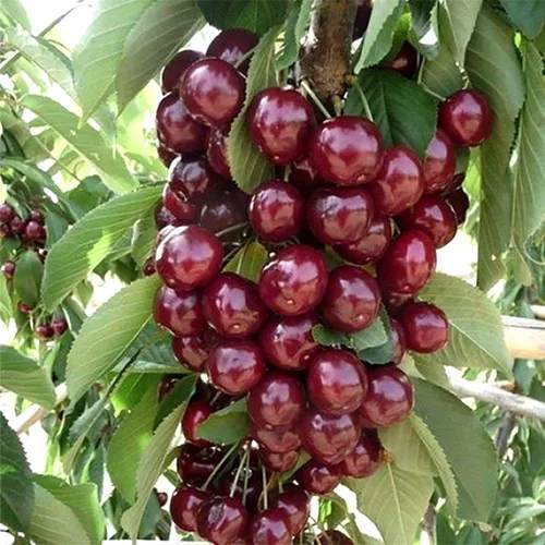 Саженцы черешни колонновидной Сильвия идеальный выбор для садоводов, стремящихся повысить урожайность и разнообразить свои посадки. Это универсальное дерево, выведенное при скрещивании сортов Ламберт Компакт и Ван, обладает замечательными характеристиками, из-за чего стало фаворитом среди любителей сладких и сочных плодов.Саженцы черешни Сильвия удивляют своей высокой урожайностью. Средний урожай составляет около 15 кг с дерева, а максимальная урожайность может достигать впечатляющих 50 кг. Такой высокий уровень товарности и отличная транспортабельность делают это дерево особенно привлекательным для коммерческих садоводов.