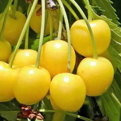 Урожайность данного сорта выше средней, что в сочетании с высокой транспортабельностью позволит вам наслаждаться свежими плодами, которые легко перенести на большие расстояния. Черешня сорта Россошанская золотая созревает во второй декаде июля. Плоды крупные, весом 6-7 граммов, имеют округлую или сердцевидную форму и ярко-желтый цвет с нежным розовым румянцем на солнечной стороне. Внутри черешни находится кремово-желтая мякоть средней плотности, которая радует своим вкусом — сладким, с еле заметной кислинкой и изысканным медовым привкусом.