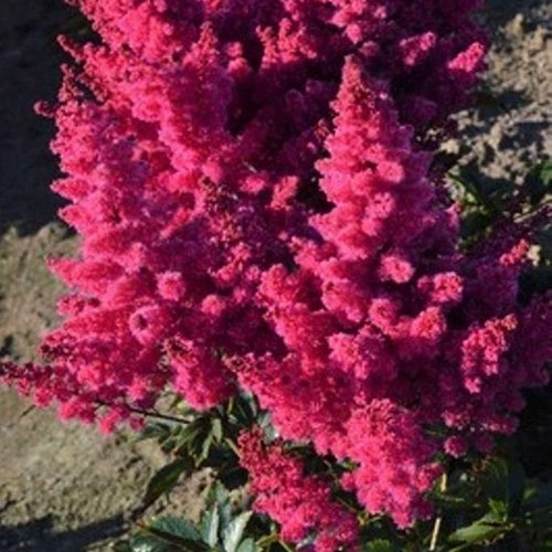 Цветение: Астильба Лаки Дэй радует глаз обилием темно-розовых компактных соцветий, которые делают её незаменимой для создания ярких цветочных композиций.