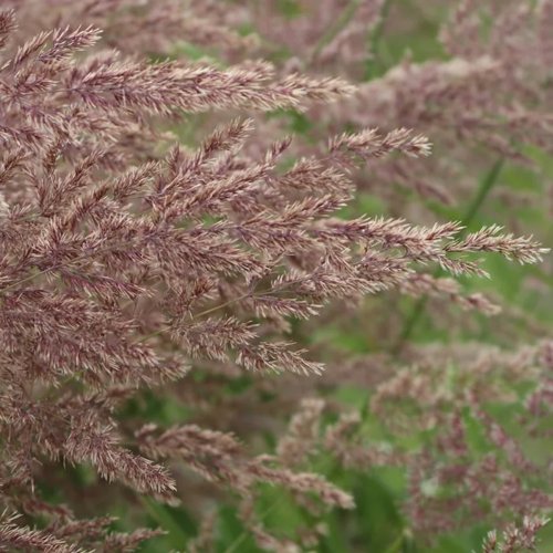 Цветение вейника начинается в июле и продолжается до сентября, заполняя пространство нежными метельчатыми соцветиями, размер которых достигает 15 см. Весной они имеют пурпурный оттенок, а к осени становятся нежно-желтыми, создавая теплую атмосферу. Эти краски прекрасно сочетаются как с камнями альпинария, так и с другими растениями в миксбордерах и рокариях.