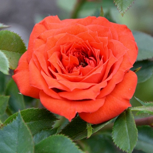 Основной цветок розы имеет красно-оранжевую окраску, при этом он яркий и насыщенный. Форма цветка является чашевидной, а его размер относительно маленький - около 3-4 см в диаметре. Цветок густомахровый и состоит из 26-40 лепестков. Он может быть представлен как одиночно, так и в соцветиях, при этом количество цветков на стебле может быть от 1 до 10.