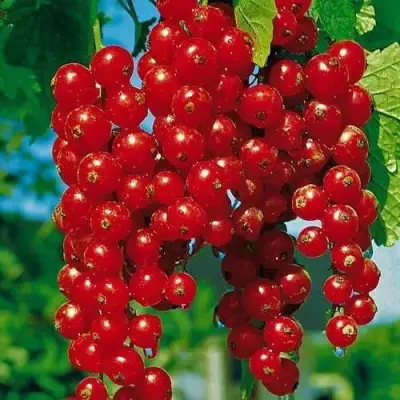 Крупные блестящие ягоды ярко-красного цвета достигают массы 0,7-1 г. Собраны в крупные плотные кисти длиной до 20 см. Ягоды после созревания остаются на кустах несколько недель, жесткие плодоножки предотвращают осыпание.