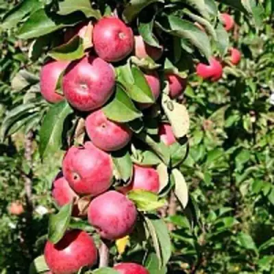 Яблоня Триумф обладает скороплодностью, что позволяет получить первые плоды уже на второй год после посадки. Ее крона компактная, колонновидная форма дерева позволяет сэкономить место на участке. Плоды этого сорта имеют красивую темно-красную полосатую окраску. Форма плода плоско-шаровидная, средних размеров и весом от 100 до 140 грамм.